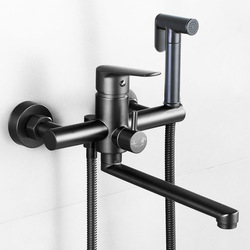 साधारण पीतल मैट काली दीवार पर गर्म और ठंडे बाथटब नल के लिए स्प्रे बंदूक शॉवर सेट सिस्टम मिक्सर के साथ